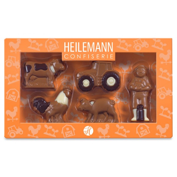 Odkryj uroczy świat w czekoladowym wydaniu z zestawem czekoladowych figurek „Farma”. Ten wyjątkowy komplet przenosi najmłodszych w świat wiejskiej przygody – w pudełku znajdziesz czekoladowe figurki zwierząt i traktor wykonane z najwyższej jakości mlecznej i białej czekolady. Każda figurka, od krowy, przez koguta i świnkę, aż po rolnika z traktorem, została stworzona z niezwykłą precyzją i dbałością o detale, dzięki czemu zachwyca wyglądem i smakiem. Zestaw idealnie nadaje się jako słodki prezent dla dzieci, upominek edukacyjny lub pyszna atrakcja tematyczna na przyjęcie.